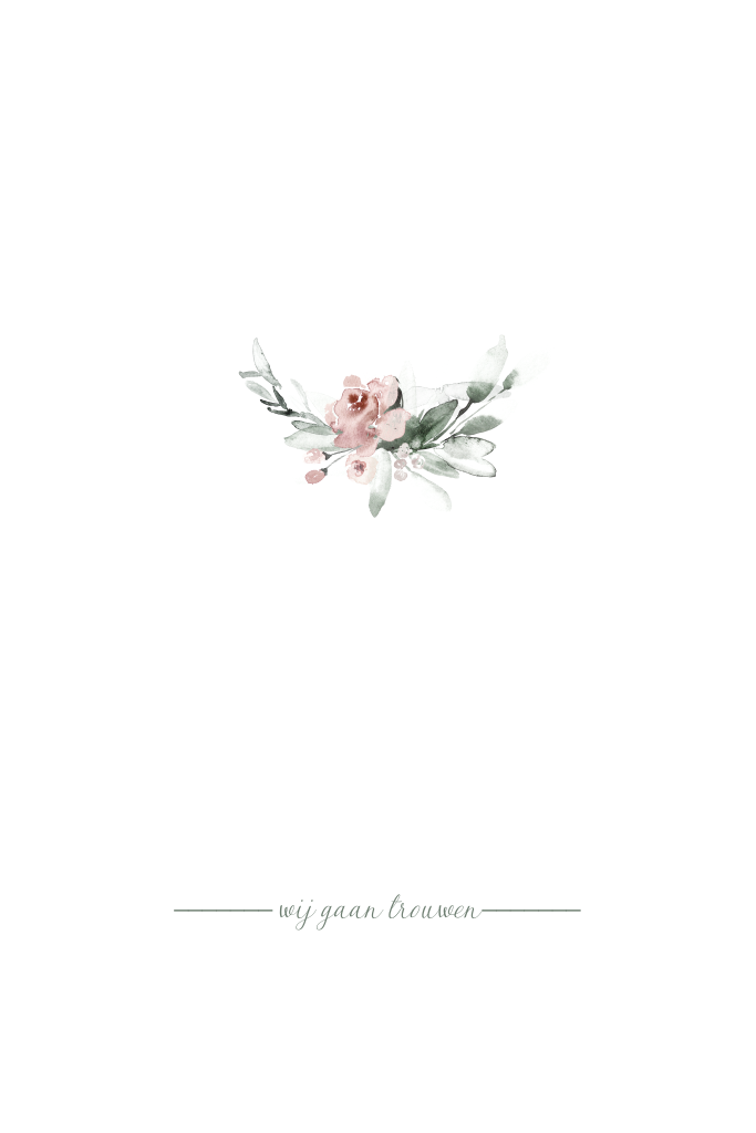 Romantische trouwkaart met initialen, goudfolie en bloemetjes