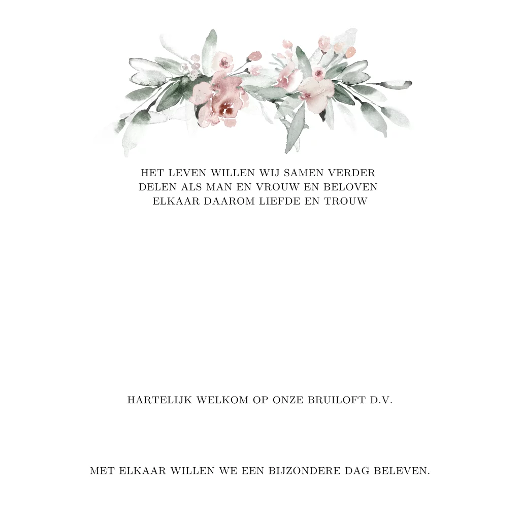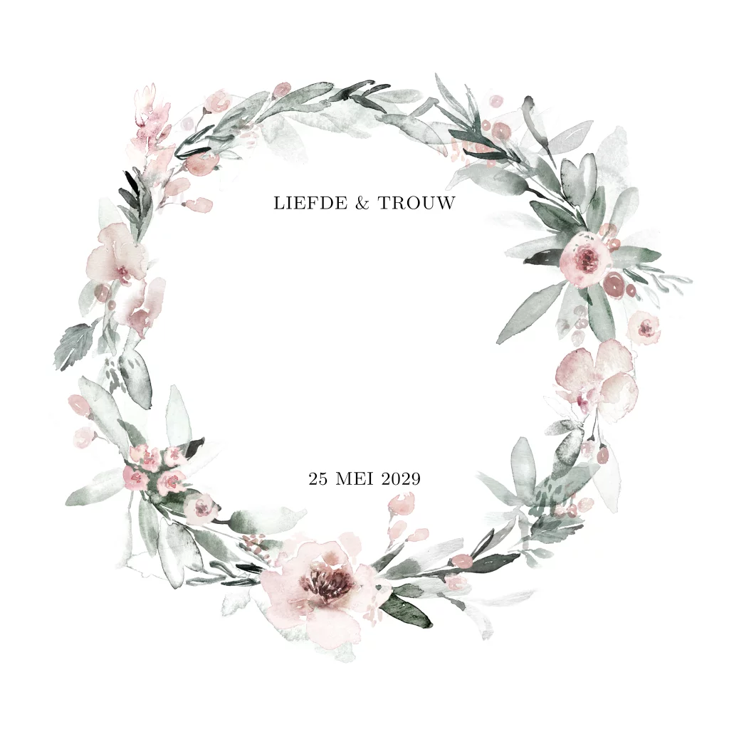 Romantische trouwkaart bloemen met kransje en zilverfolie