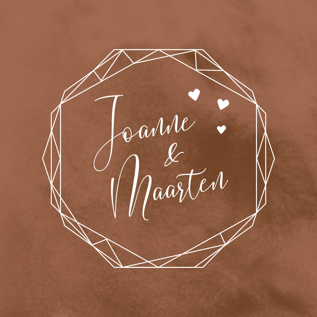 Een trendy geometrisch figuur in goudfolie! Schuif in de kaartopmaker even het figuur opzij om de namen te kunnen selecteren en aanpassen. Daarna schuif je het geometrisch figuur weer terug.