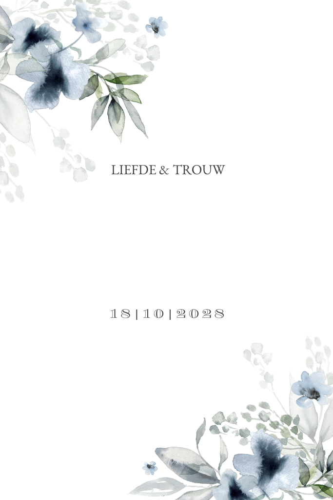 Mooie unieke blauwe bloemetjes en teksten in goudfolie. In de beeldbank vind je meer ontwerpen met deze bloemetjes. De map heet: Blue Romance. LET OP: Als je andere icoontjes wilt gebruiken dan kun je die niet zelf omzetten naar goudfolie. Neem daarvoor eerst contact met ons op.
