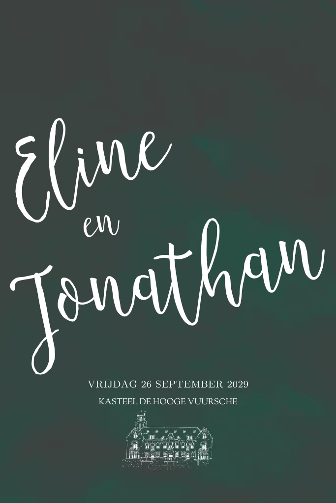 Een prachtige trouwkaart met echte goudfolie en een donker groene ond. In de kaartopmaker kun je aanpassingen doen.