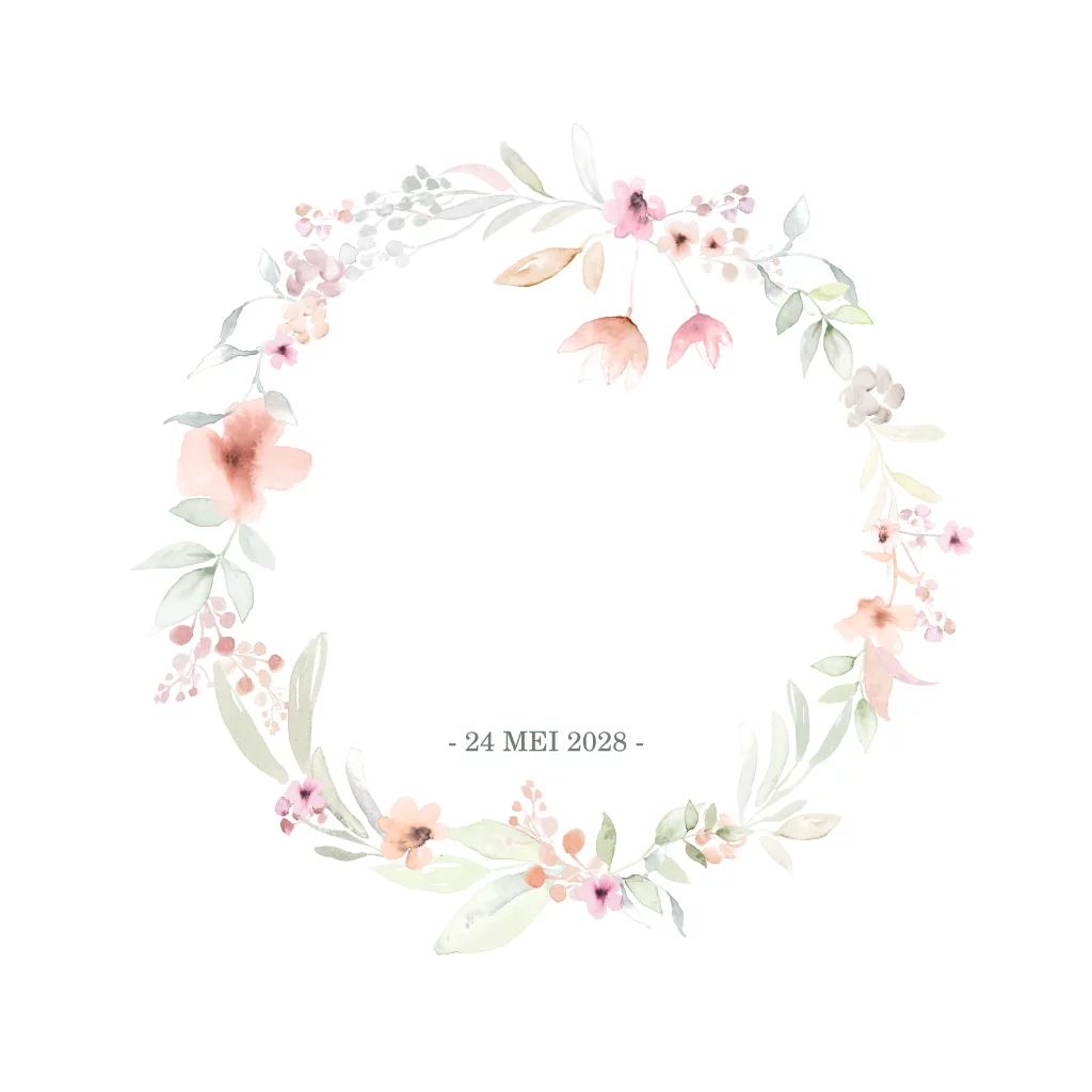 Trouwkaart bloemen met pastelkransje en roséfolie