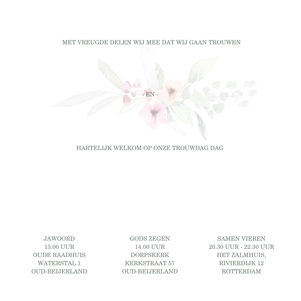 Deze trouwkaart past bij een bruiloft in het voorjaar en de zomer. Voor een bruiloft met lieve pastel tinten!