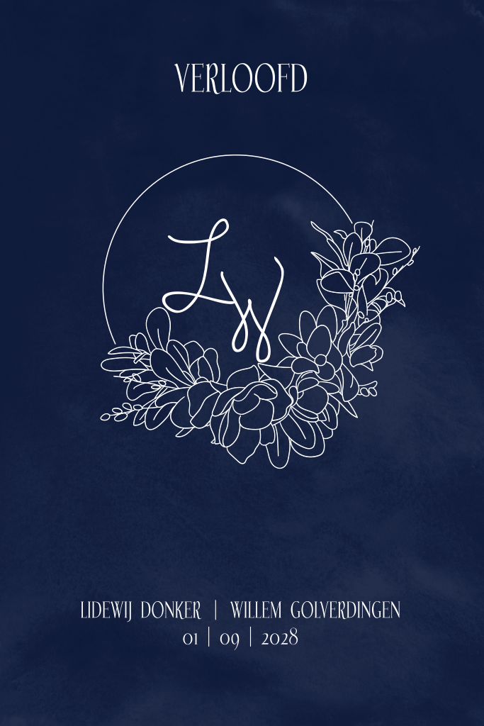 Deze verlovingskaart met roséfolie en krans maakt deel uit van een trouwkaartenset.