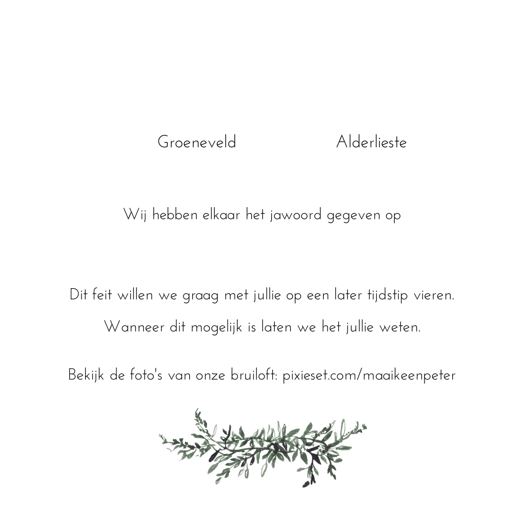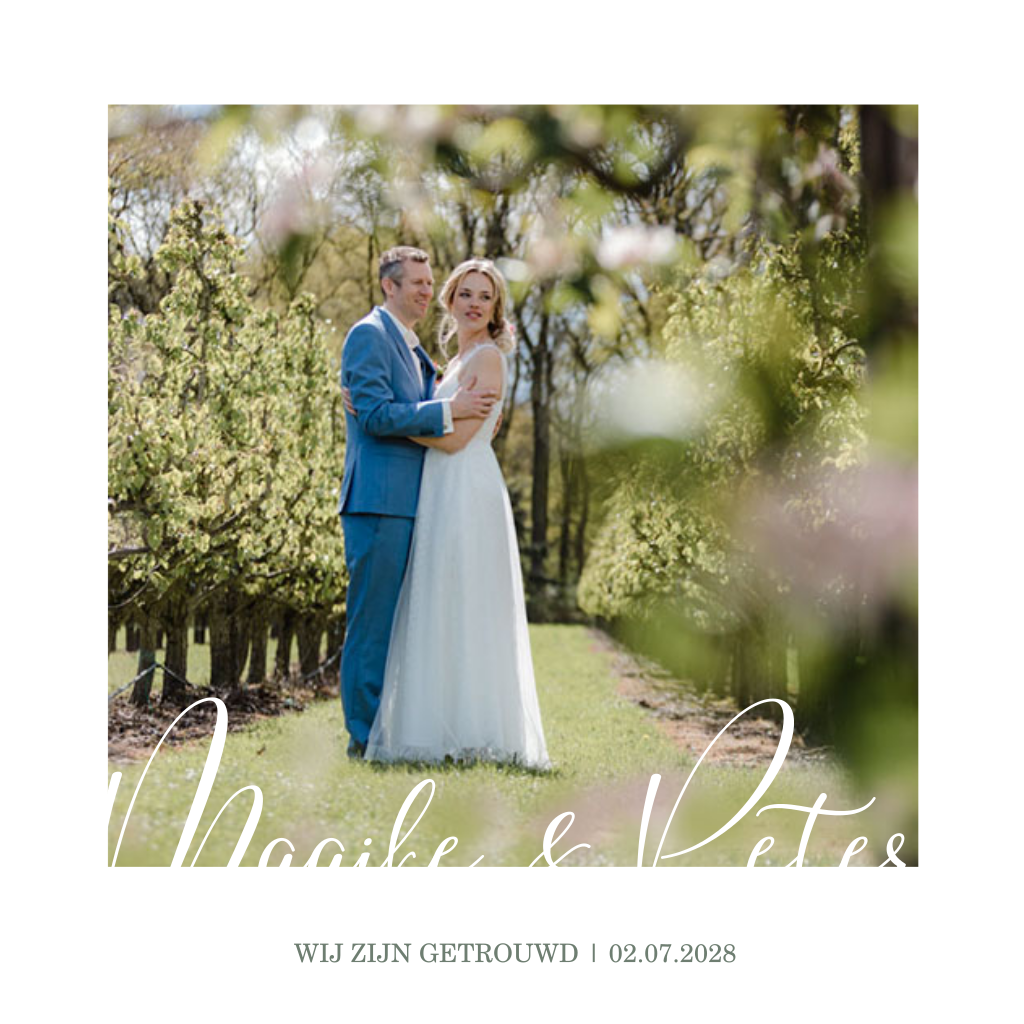 Een mooie wij zijn getrouwd kaart met foto en goudfolie. Plaats jullie eigen foto op deze Wij zijn getrouwd kaart. Je kunt in de kaartopmaker een ander formaat foto bijsnijden tot een vierkant. Plaats de rand van de foto niet te dicht op de rand van de getrouwdkaart. Met deze getrouwdkaart maak je altijd een unieke trouwkaart met foto.