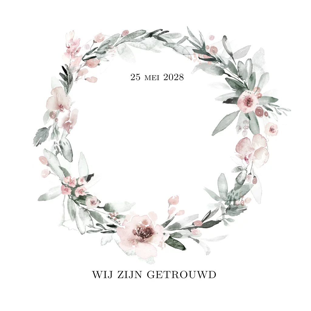 Wij zijn getrouwd kaart met zilverfolie en krans