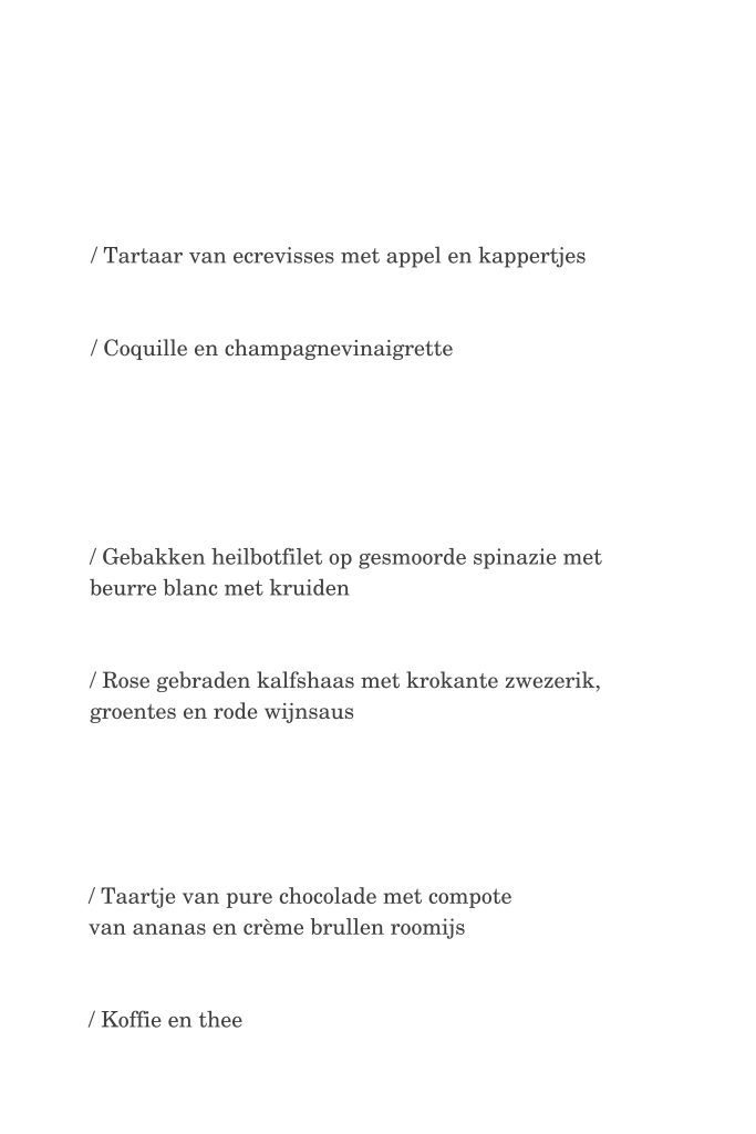 Deze menukaart wordt gedrukt met echte goudfolie. Met zilverfolie of koperfolie is ook mogelijk. In de kaartopmaker kun je dit eenvoudig aanpassen. Maak in de kaartopmaker een unieke menukaart met jullie eigen gerechten. Je bestelt een proefdruk voor €2,50. Op verschillende formaten is deze kaart te laten drukken. Wij adviseren het formaat 11 bij 17 cm. Bijpassende naamkaartjes zijn hierbij ook te maken op onze site.Totaalprijs: 0 |