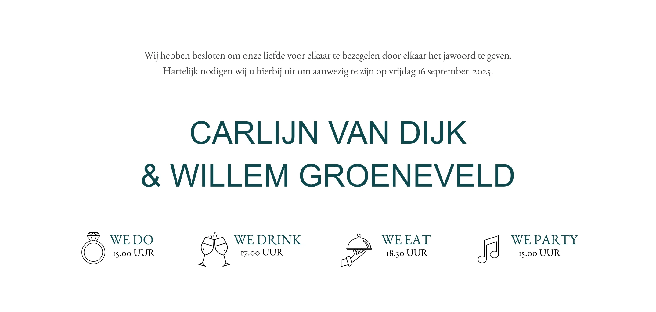 Deze kaart is minimalistisch dus geeft een strakke look aan jullie trouwkaart.