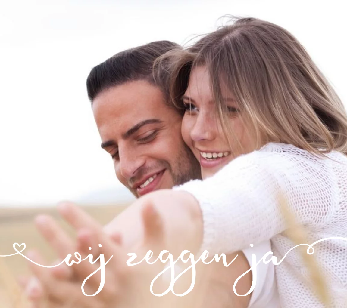 Een unieke trouwkaart om jullie eigen foto op te plaatsen. TIP: kies de kleuren uit jullie foto voor de teksten. Wij kunnen jullie daar bij helpen.