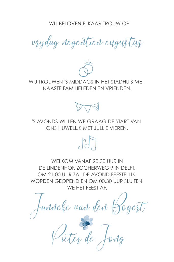 - Bij de 1e proefdruk ontvang je een proefsetje met staaltjes van papiersoorten en kleuren enveloppen.
