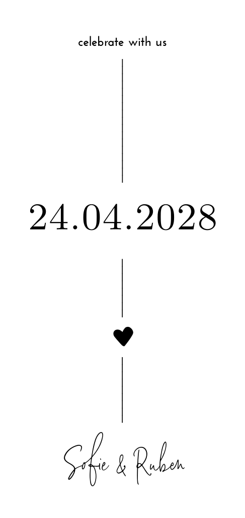 Moderne trouwkaart met lijnen en hartje
