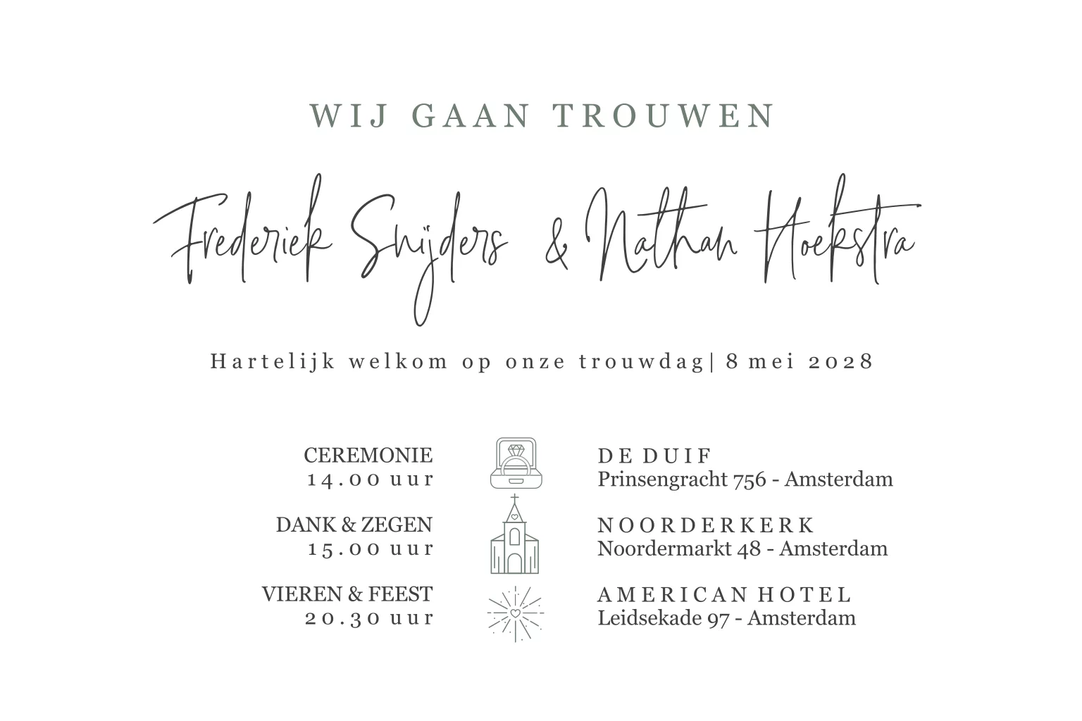 - Tijdens het bestellen kies je uit meerdere formaten, verschillende papiersoorten en één van de 20+ kleuren enveloppen.