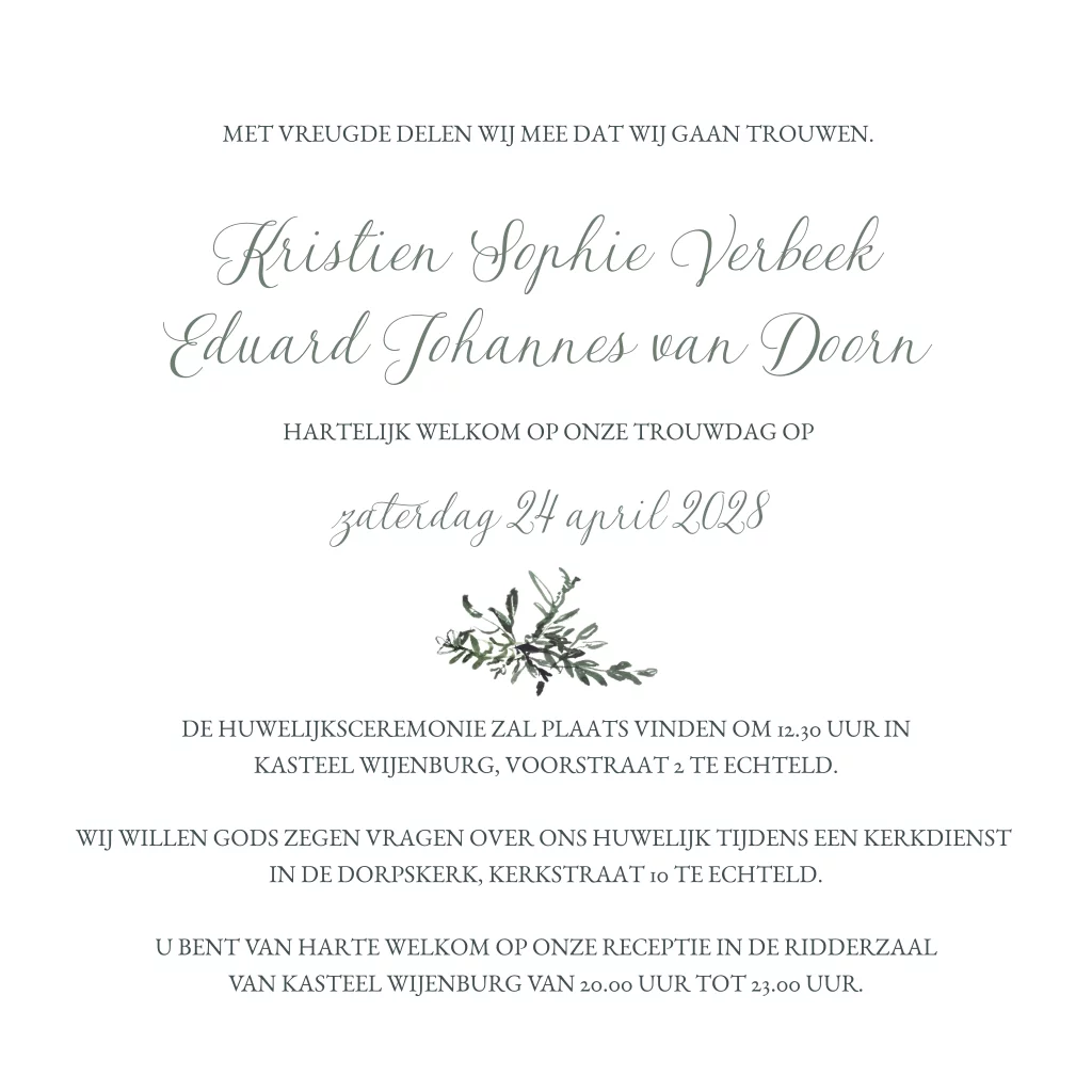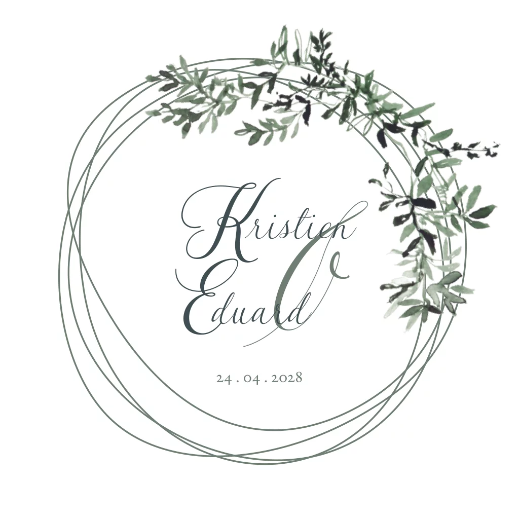 Een trendy trouwkaart met cirkels en blaadjes. Deze trouwkaart is een Mix & Match van een geometrisch figuur met een detail van botanische blaadjes. In de beeldbank staat in de map MIx & Match meer groepjes. Of in de map Green Leaves vind je meer afbeeldingen met deze blaadjes. Maak zo een unieke trouwkaart!