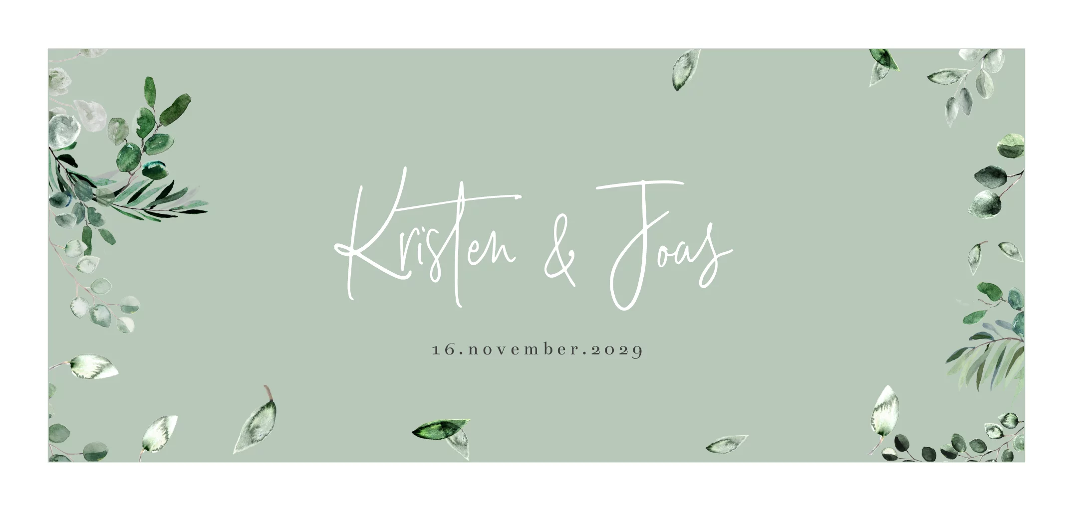 Een stijlvolle trouwkaart met eucalyptusblaadjes. De achtergrond is heeft een mint groene kleur die qua kleur aangepast kan worden. Deze trouwkaart wordt gedrukt op het formaat 10 bij 21 cm.