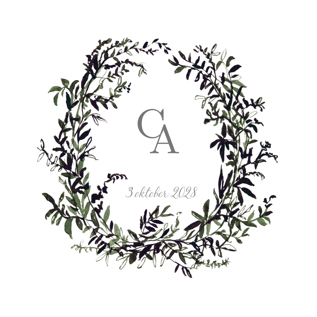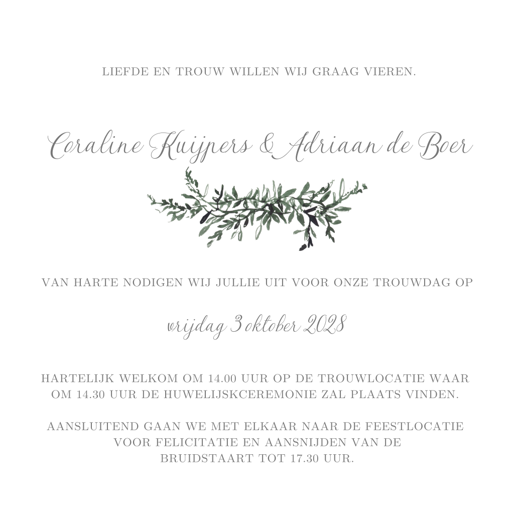 Trouwkaart met krans van takjes