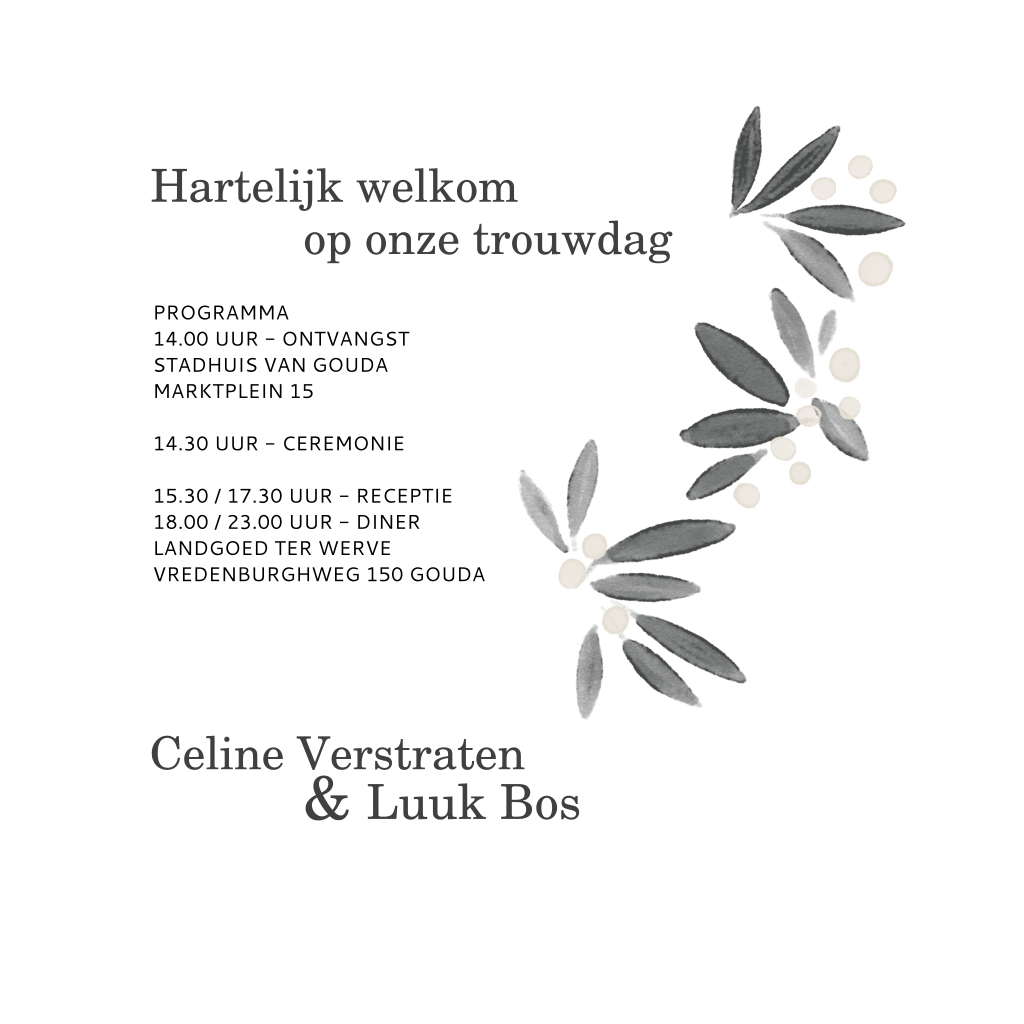 De teksten worden op een originele manier geplaatst op de kaart voor een strakke look.