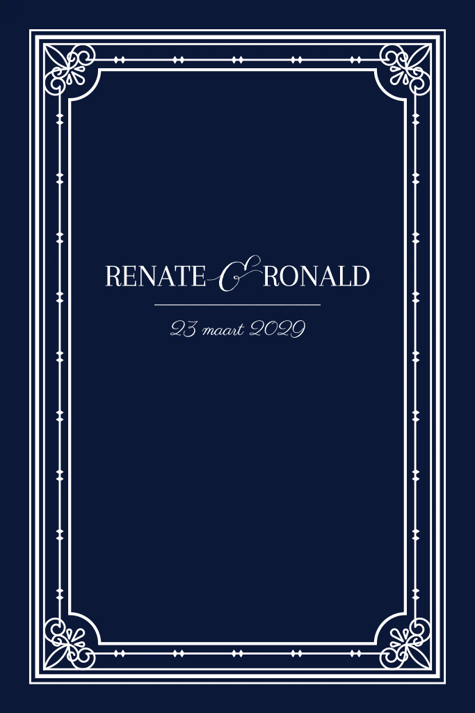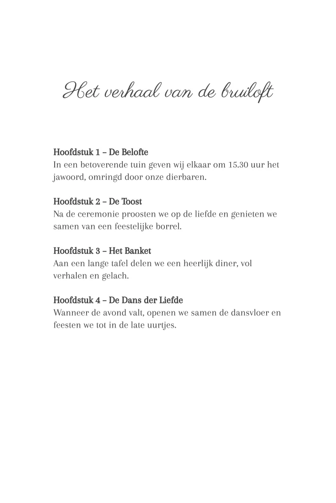 Ben jij boekenliefhebber? Bestel dan een trouwkaart die lijkt op de omslag van een boek.. Dit is een trouwkaart in de vorm en stijl van een klassiek boek. Aan de binnenkant voeg je het programma van jullie bruiloft toe in hoofdstukken. De illustraties op de voorkant en tekst binnenin de trouwkaart wordt in roséfolie gedrukt. Met deze boek trouwkaart stuur je een persoonlijke en unieke trouwkaart!
