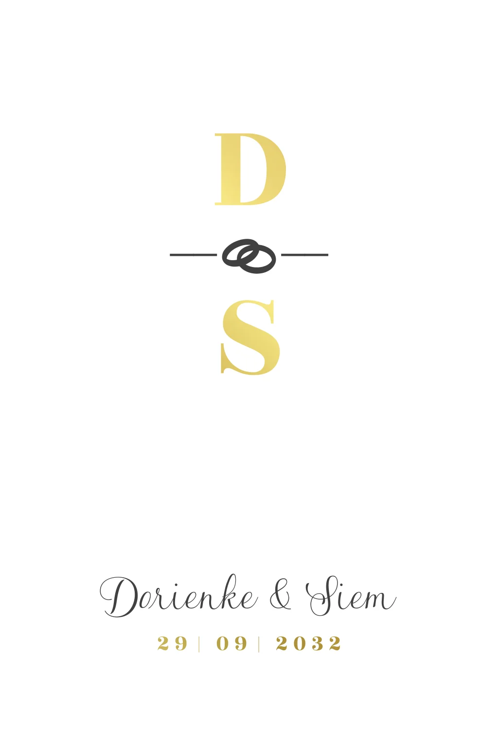 Ontwerp een klassieke trouwkaart voor jullie bruiloft. Dit is een bogen uitnodiging bruiloft in wit met teksten in goudfolie. Deze bruiloft uitnodiging is dubbel, waardoor er genoeg ruimte is voor alle informatie.