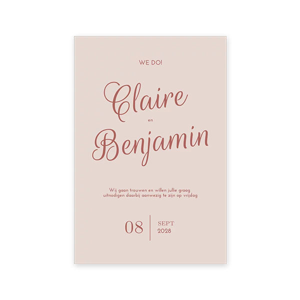 Deze originele trouwkaart in oudroze maakt deel uit van een trouwkaartenset.