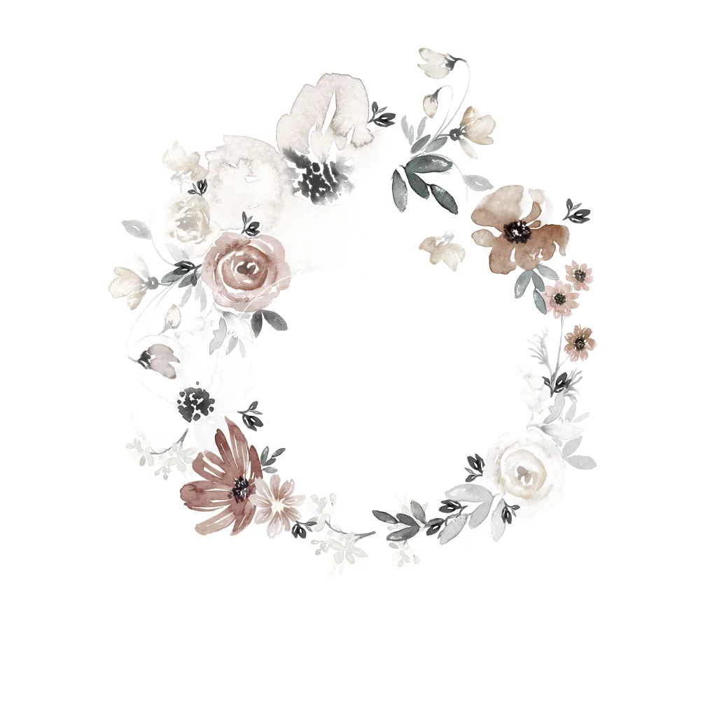 Een klassieke trouwkaart met een bloemenkrans en logo in roséfolie. Je kunt in de kaartopmaker zelf een logo maken van jullie initialen. Je kunt meer bloemen in deze stijl vinden in de beeldbank in de map Bloemen: Rusty Beauty. Zo maak je altijd een stijlvolle trouwkaart.