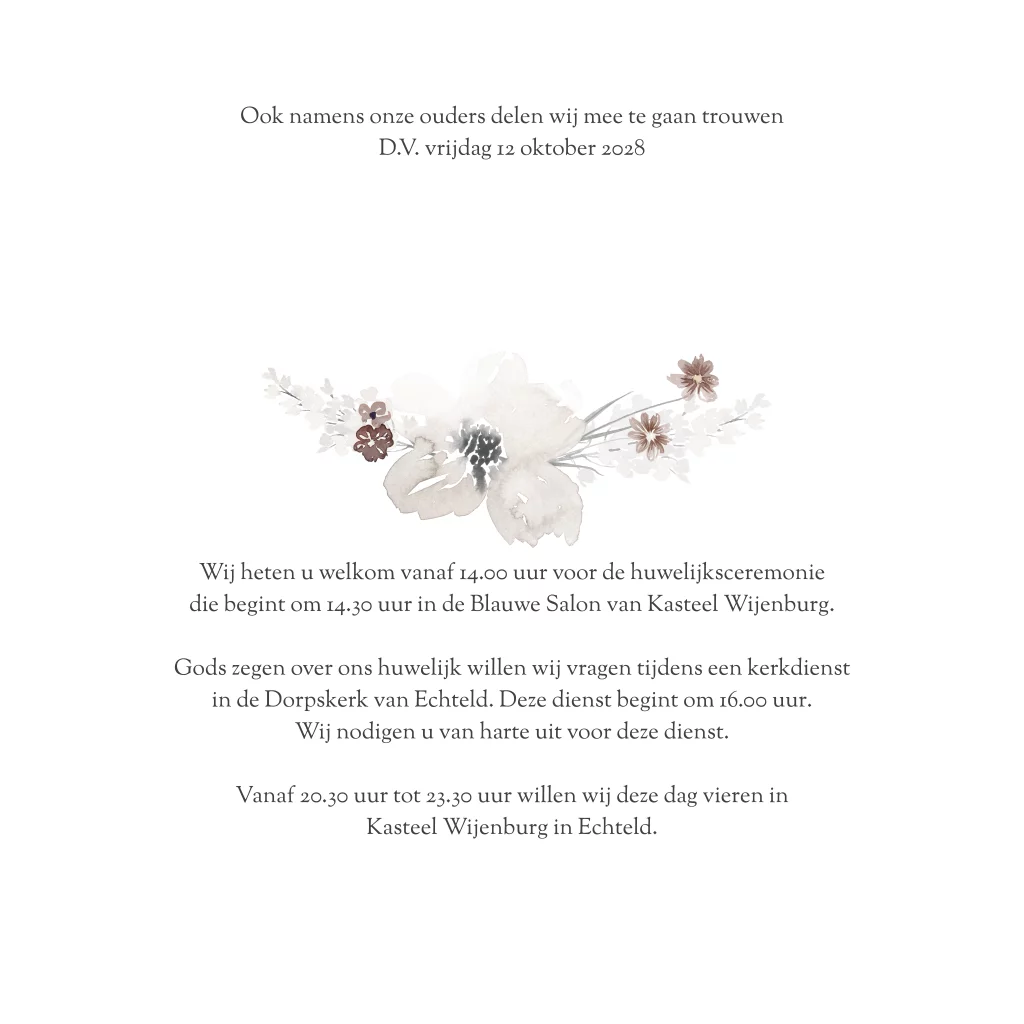 Deze klassieke trouwuitnodiging maakt deel uit van een trouwkaartenset.
