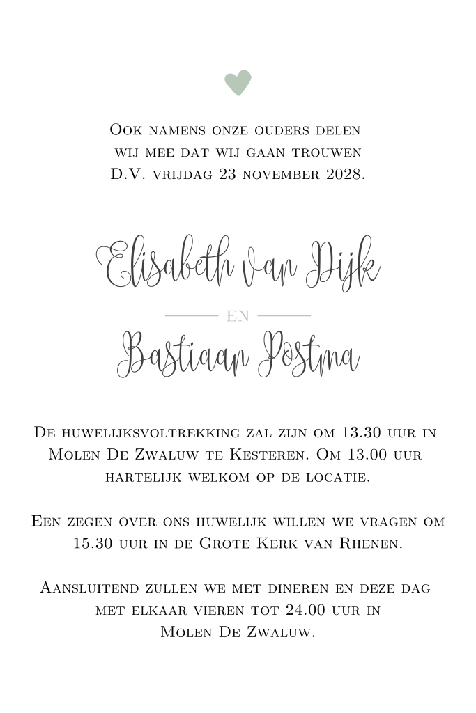 De achtergrondkleur van deze trouwkaart kan aangepast worden. Ook alle teksten kun je naar eigen wens aanpassen in de kaartopmaker.