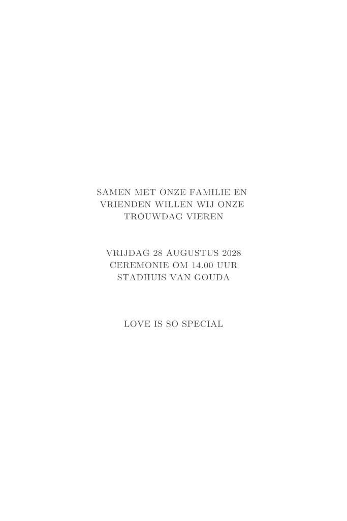 Een moderne trouwkaart om te ontwerpen met jullie initialen in goudfolie. Deze kleuren kunnen door jullie aangepast worden voor unieke trouwkaart.Totaalprijs: 0 |