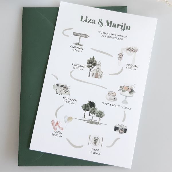 Deze originele trouwkaart maakt deel uit van de trouwkaarten set Liza.