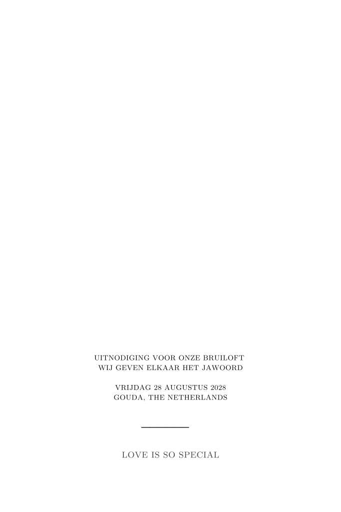 Maak een stijlvolle trouwuitnodiging met glimmende goudfolie en lieve stipjes. De stipjes kun je verwijderen, groter/ kleiner maken of nog meer toevoegen. Wij hebben gekozen voor ronde hoeken maar dit kun je ook wijzigen. Zo maak je altijd een stijlvolle uitnodiging voor de bruiloft.| Totaalprijs: 0 |