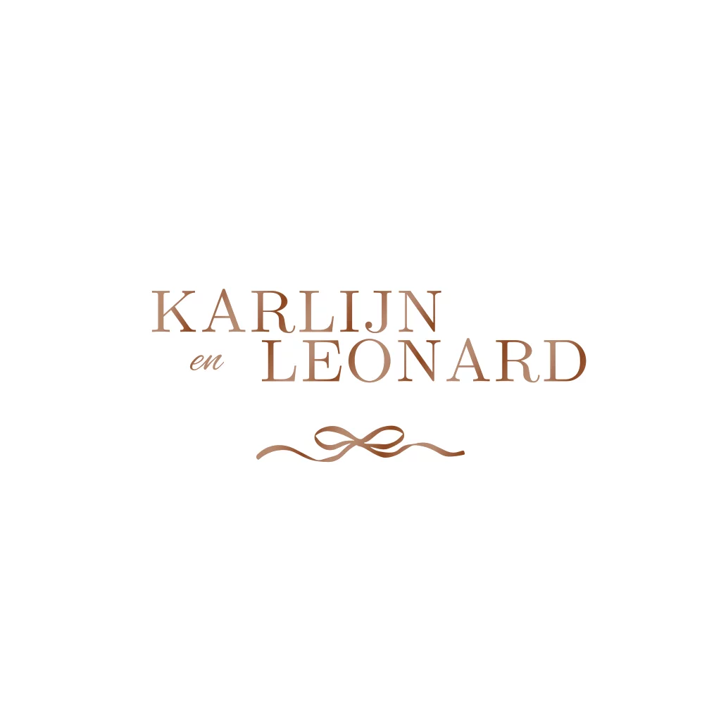 Ontwerp je eigen klassieke trouwuitnodiging met dit voorbeeld. Je kunt de tekstkleuren aanpassen zodat deze past bij jullie bruiloft. Leuk detail is het kleine strikje wat nu helemaal trend is.