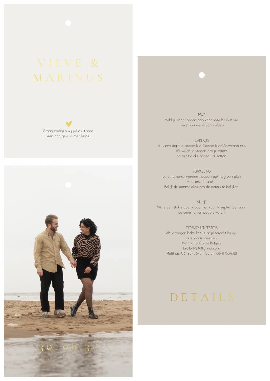 Stijlvolle trouwkaart met elegant strandthema. Pas het ontwerp eenvoudig aan in onze online editor.