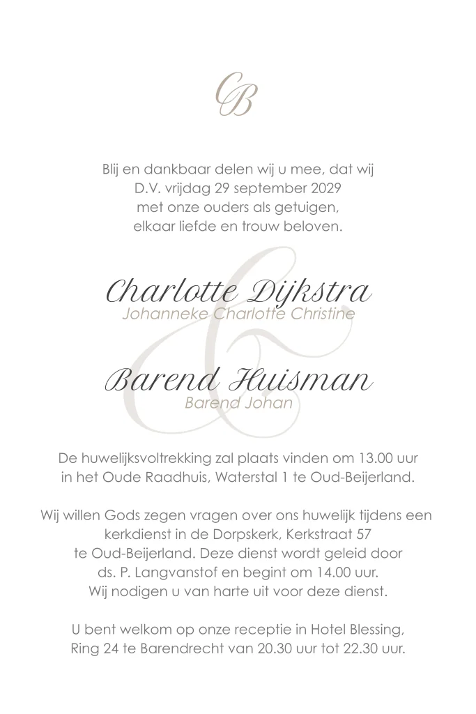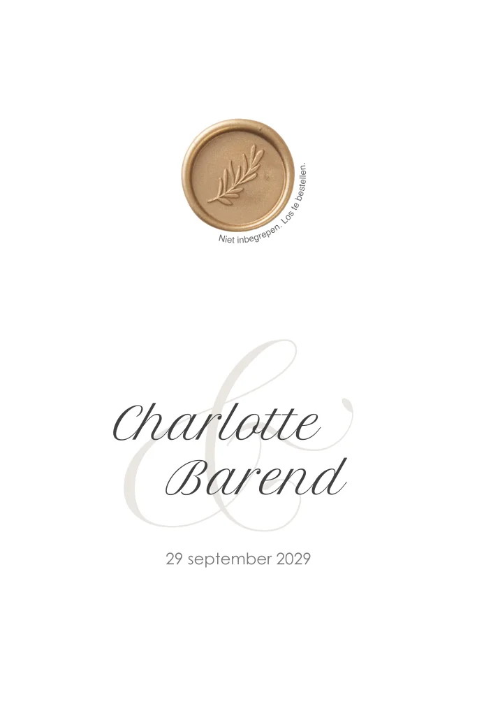 Ontwerp een klassieke trouwuitnodiging met eventueel een lakzegel. De lakzegel bestel je los bij de trouwkaart. Je vindt ze hier .