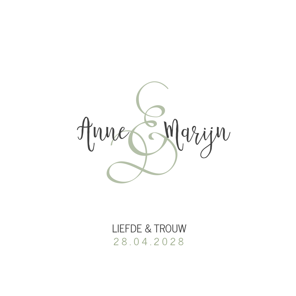 Klassieke trouwkaart met namen en ampersand in groen
