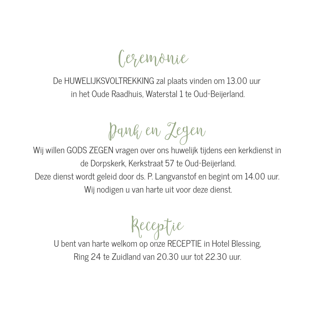 Als dit de trouwkaart voor jullie is, wijzig in de kaartopmaker dan de gegevens en bestel een proefdruk.