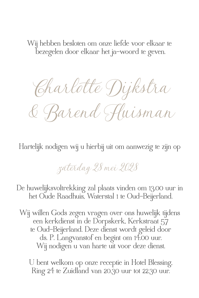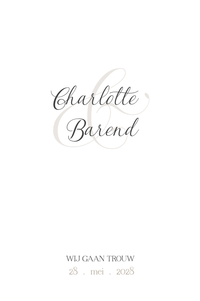 Kies deze klassieke trouwkaart met jullie namen op de voorkant.