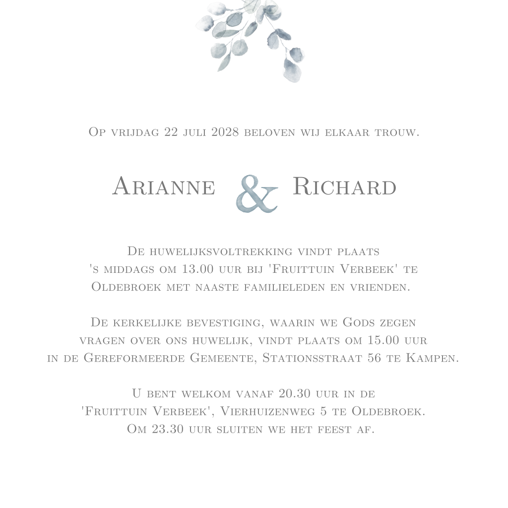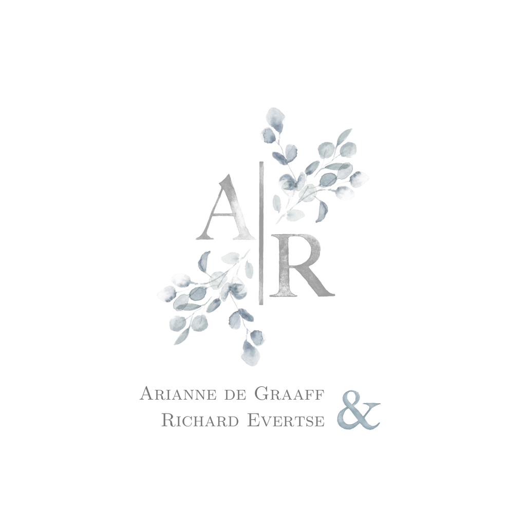 Maak met jullie initialen een mooie trouwkaart. De watercolor letters op de voorkant van de trouwkaart vind je in de beeldbank in de map Alfabet Geverfd.