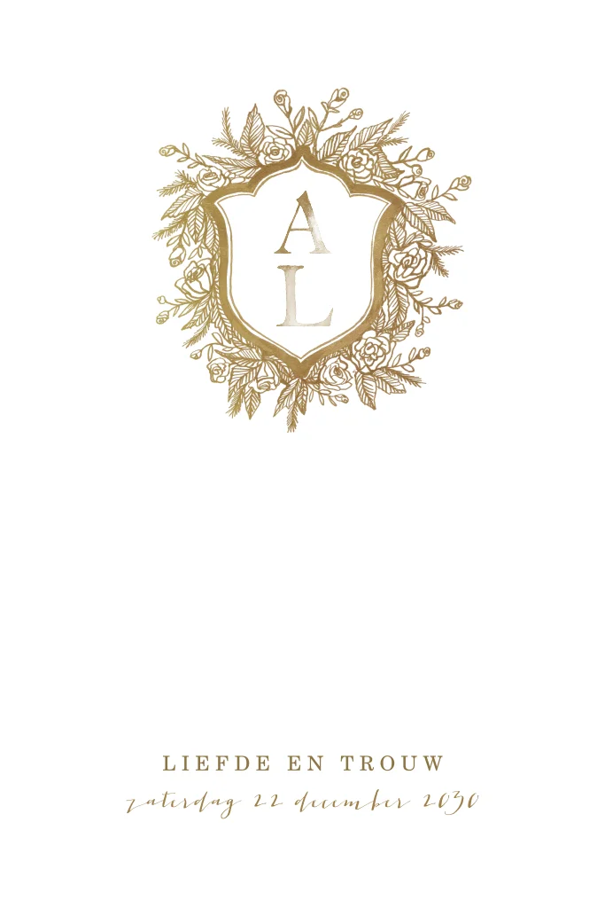 Jullie trouwen eind december - voor de kerst? Kies dan deze klassieke trouwkaart met goudlook. In de kaartopmaker maak je een uniek ontwerp van deze trouwkaart?