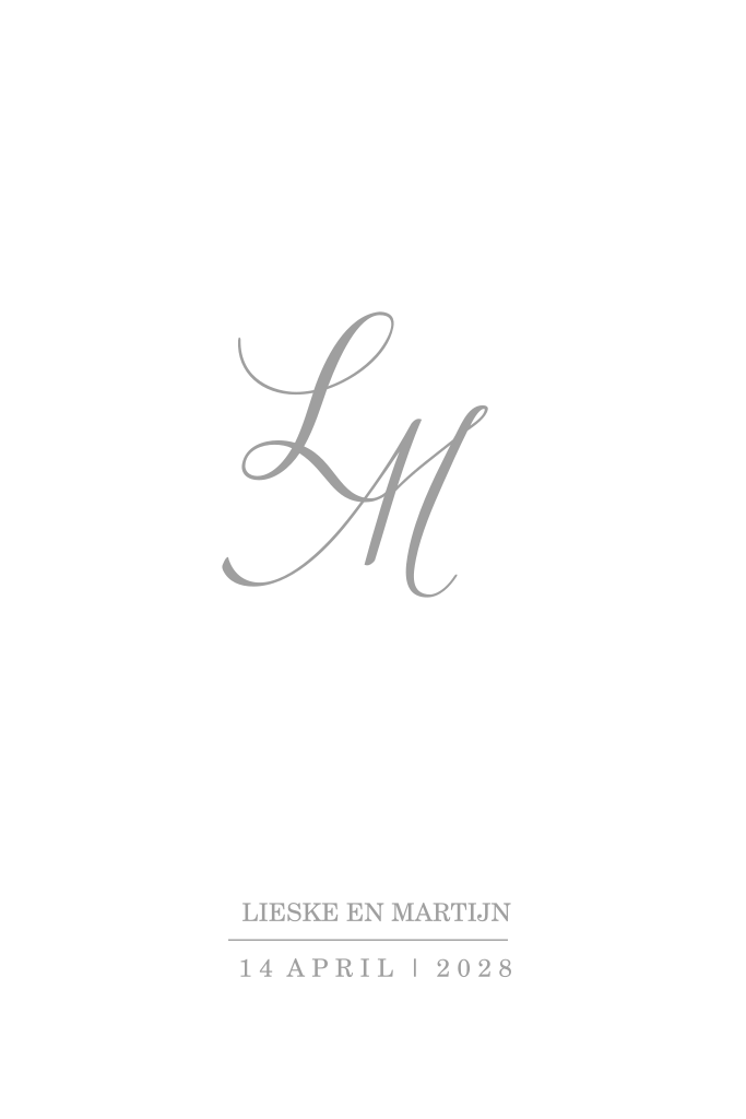 Een klassieke trouwkaart. Vul jullie eigen initialen in en zorg er voor dat ze mooi op elkaar aansluiten voor een uniek logo op jullie trouwkaart.