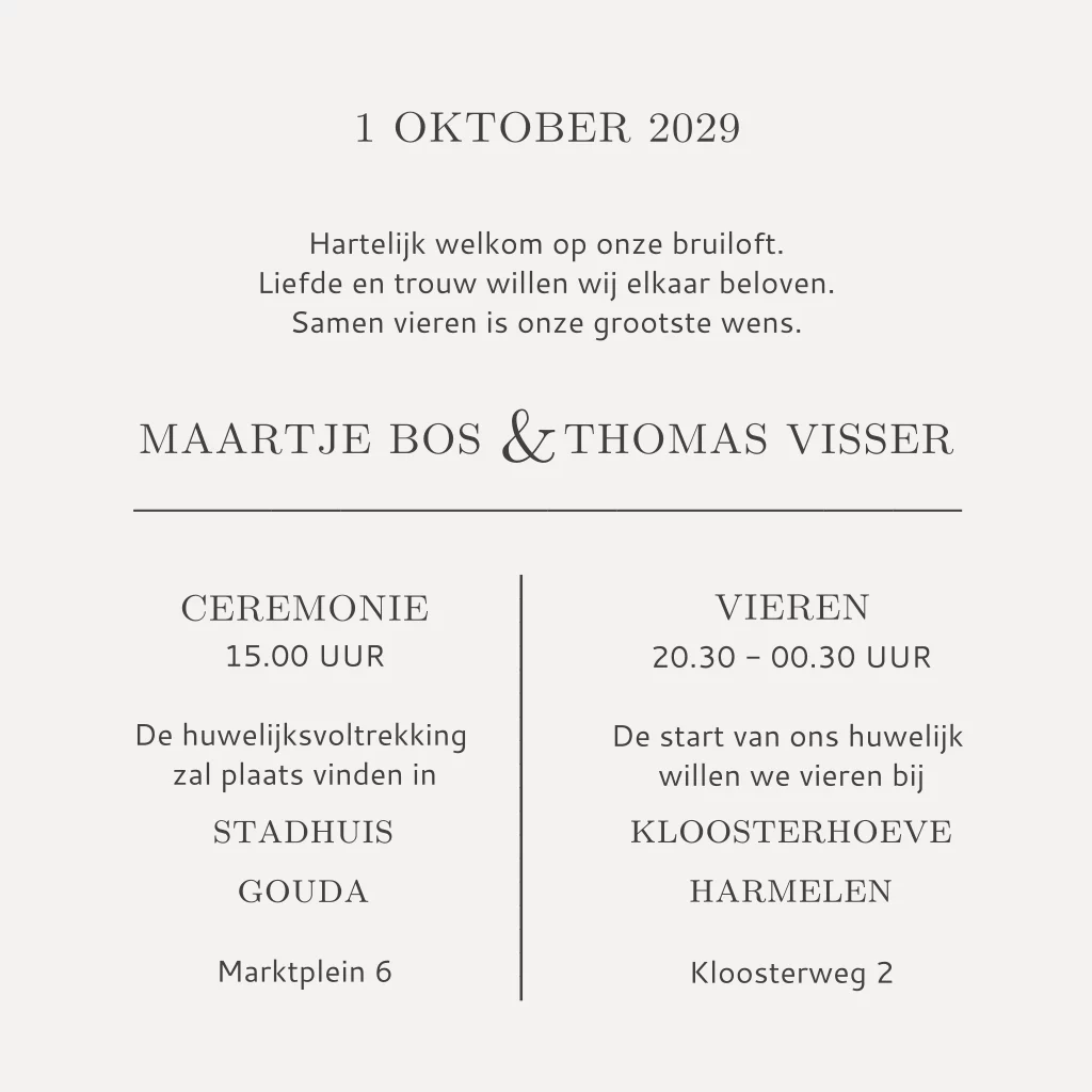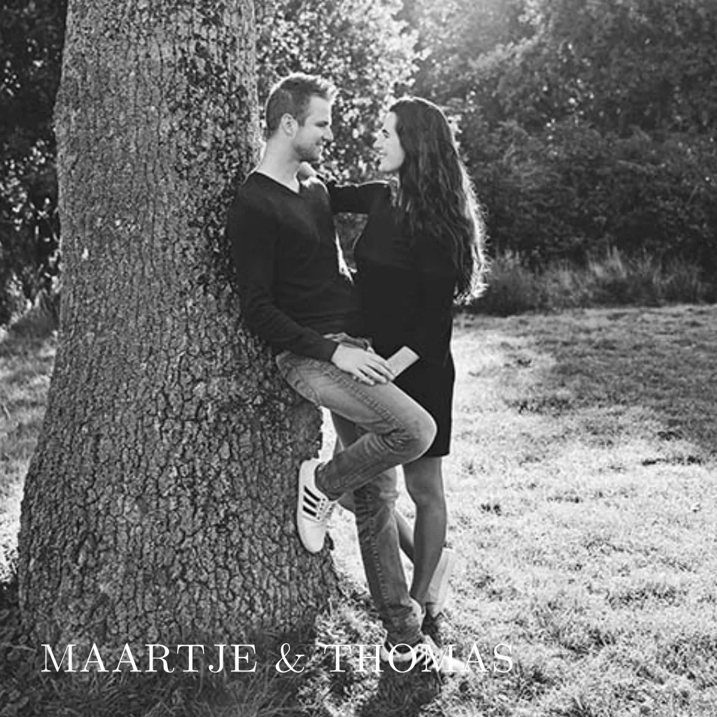 In de kaartopmaker kun je eenvoudig jullie eigen foto uploaden op deze trouwkaart. Verwijder eerst deze foto en upload jullie eigen mooiste foto.