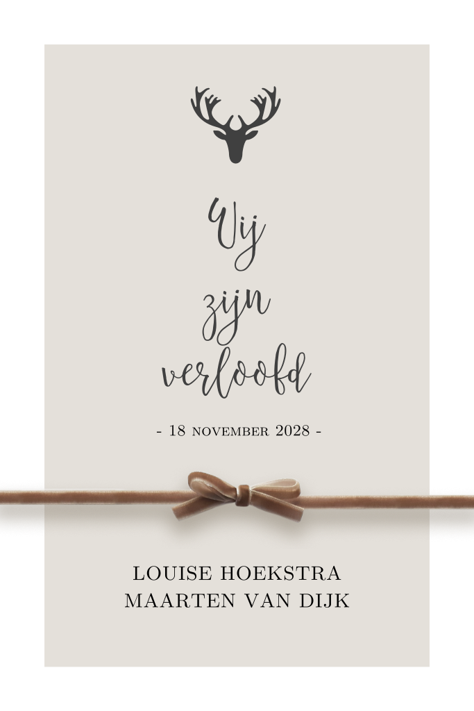 lint  bestellen zodat je thuis kunt kijken hoe dit verlovingskaartje met lintje eruitziet. Keuze uit 3 verschillende kleuren lint.