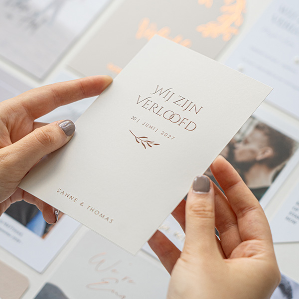 Deze stijlvolle verlovingskaart maakt deel uit van de trouwkaarten set Sanne & Thomas.