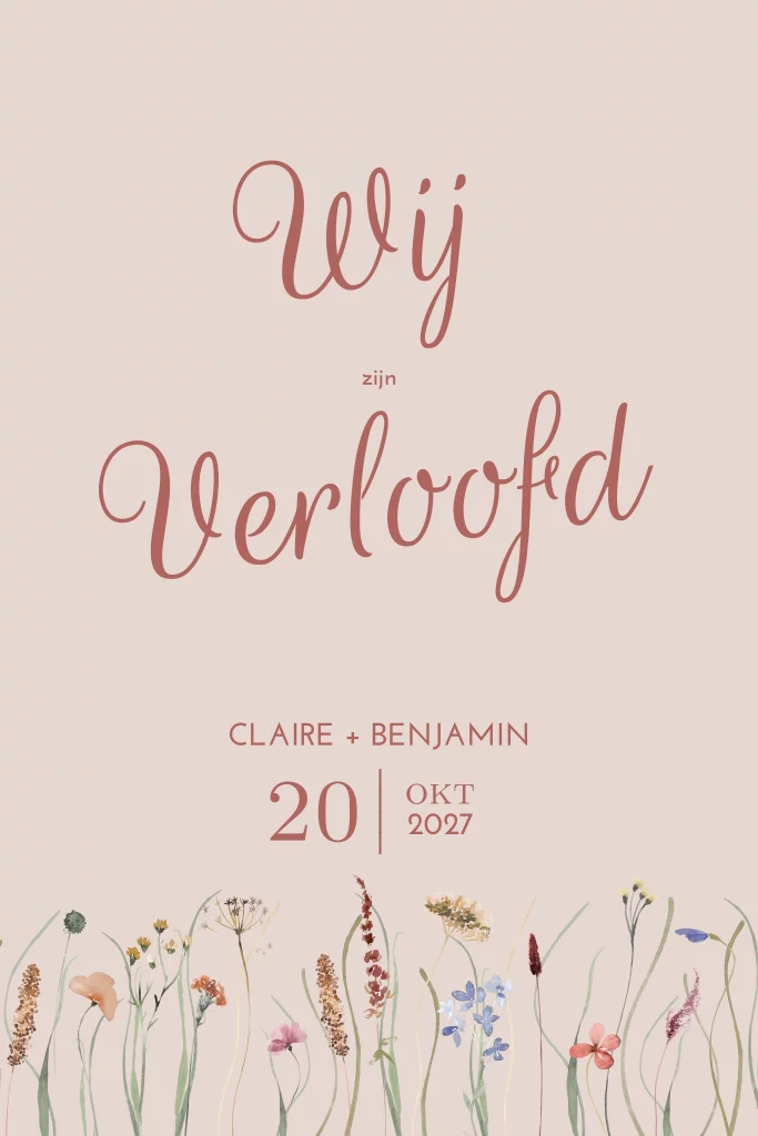 Zijn jullie net verloofd? Bestel dan een mooie verlovingskaart in oudroze tint. Op de achterkant voeg je eenvoudig tekst toe en nodig je vrienden en familie uit voor jullie verlovingsfeestje.