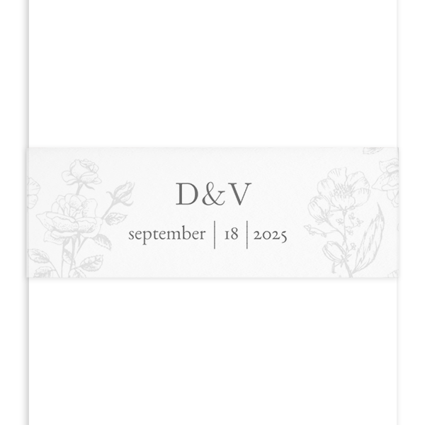 Met deze wikkel bind je kaartjes bij elkaar. Dit is een wikkel in klassieke stijl met logo en bloemen. Deze wikkel past bij een trouwkaart in dezelfde stijl.