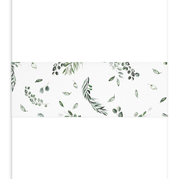 Met deze wikkel van kalkpapier bind je kaartjes bij elkaar. Dit is een wikkel vol eucalyptusblaadjes. Een wikkel om je trouwkaart zorgt voor een originele een persoonlijke kaart. Je kan de wikkel om 1 kaart, meerdere kaartjes of een pocketfold vouwen.